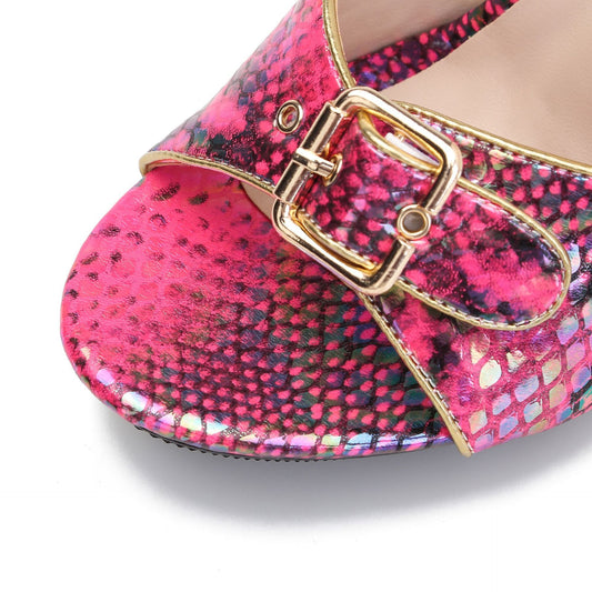Fashionable Color Snake Pattern Square Buckle Sandal